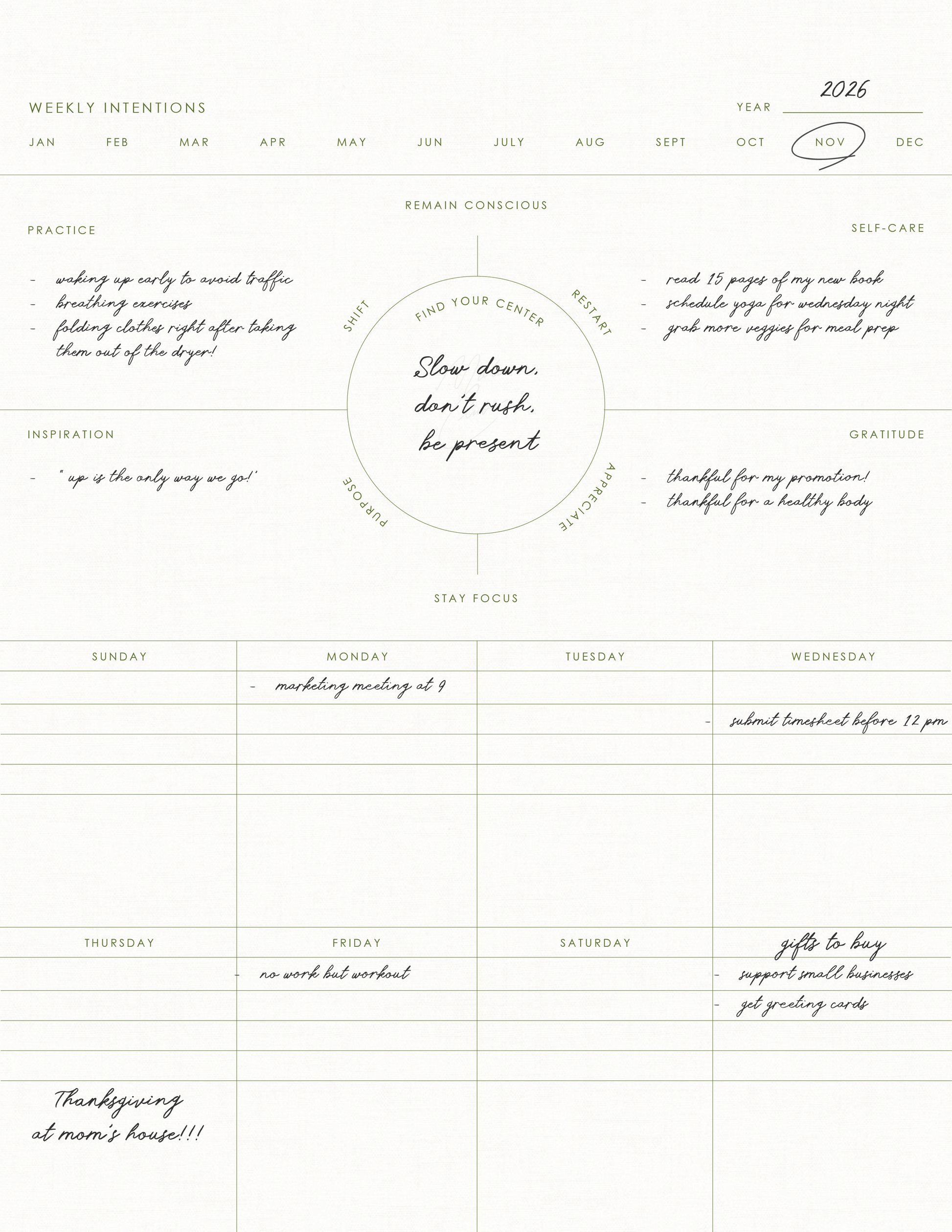Weekly Intentions Planner - Undated